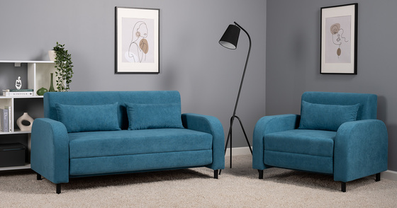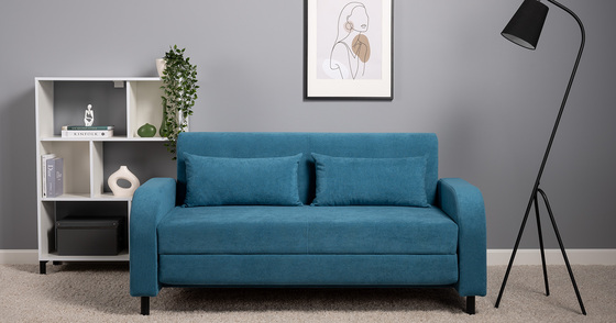Диван-кровать прямой Черри ТД 285 велюр Irida 07 синий, Эвита пистачио ментоловый