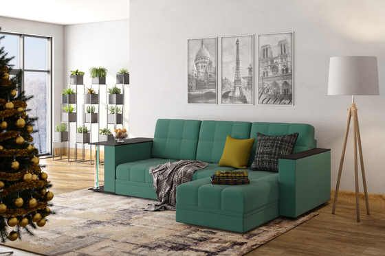 Диван-кровать угловой Тэдди 1503 композиция 2, букле Pique 007 оливковый, модульная система, сборка на любую сторону