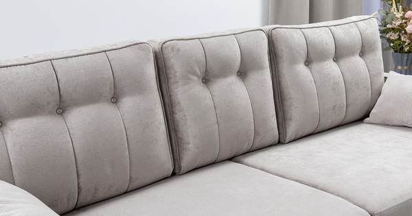 Диван-кровать угловой Арно ТД 565 велюр Лаки 04 песочный, Vertical 910 молочно-серый, сборка на любую сторону