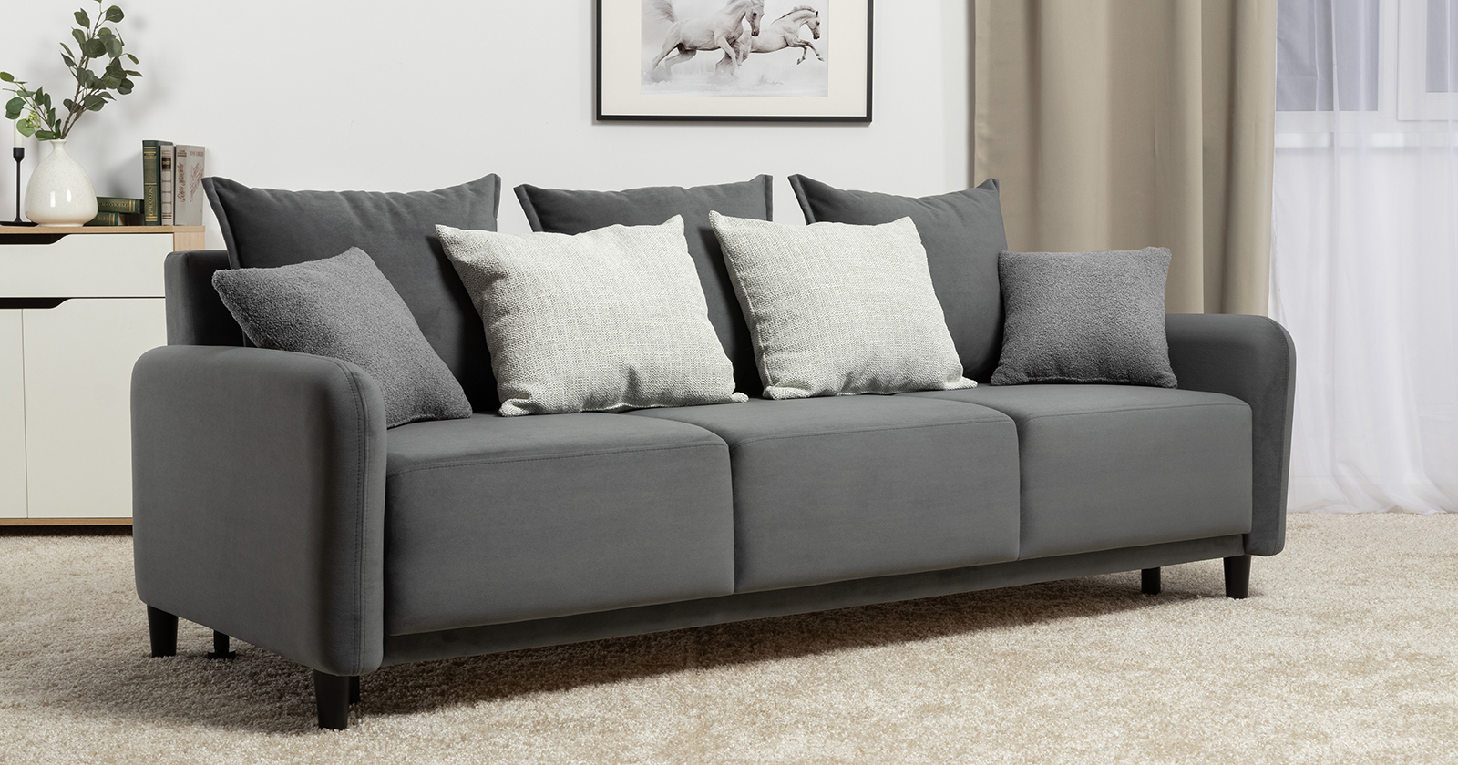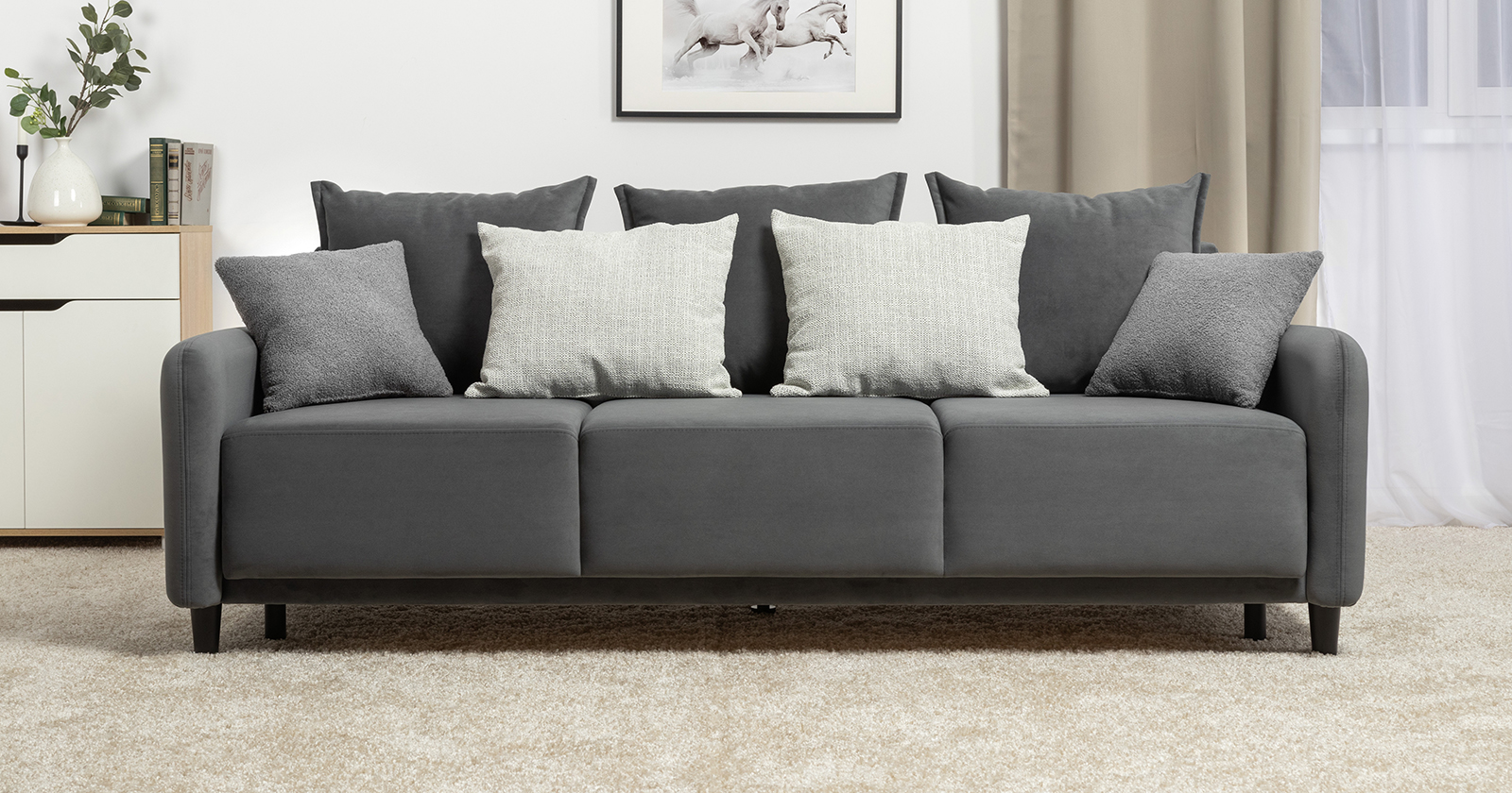Диван-кровать прямой Дакота ТД 586 велюр Vendetta 11 графитовый серый, Albus Zemin 1735 z1 col 2 белый, Romeo 06