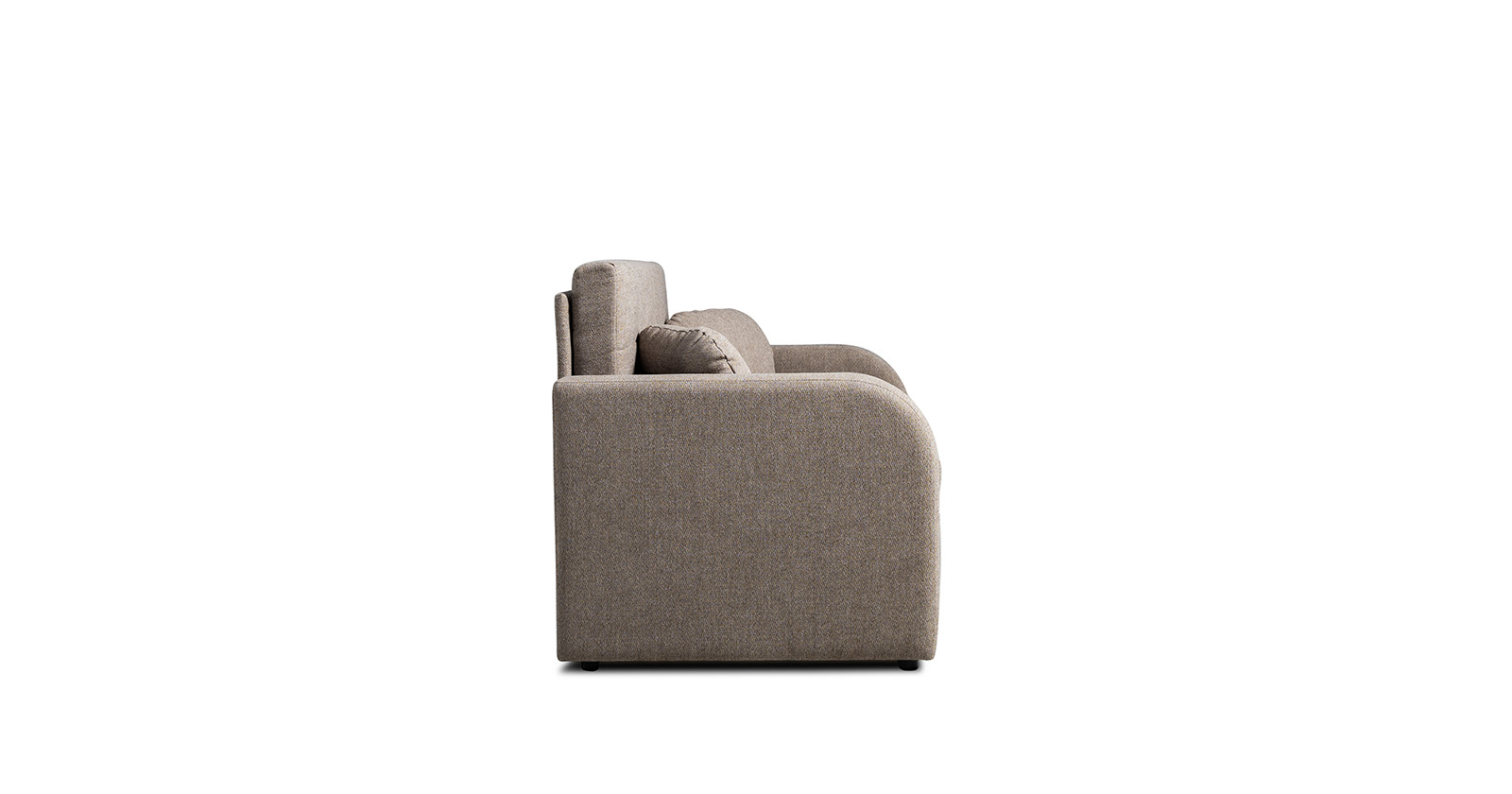 Коллекция выполнена в современном минималистичном стиле с мягкой обивкой из износостойкой ткани и декоративной стежкой, подчеркивающей геометрию форм. Механизм трансформации обеспечивает дополнительное спальное место, делая мебель не только эстетичной, но и максимально функциональной для небольших пространств.