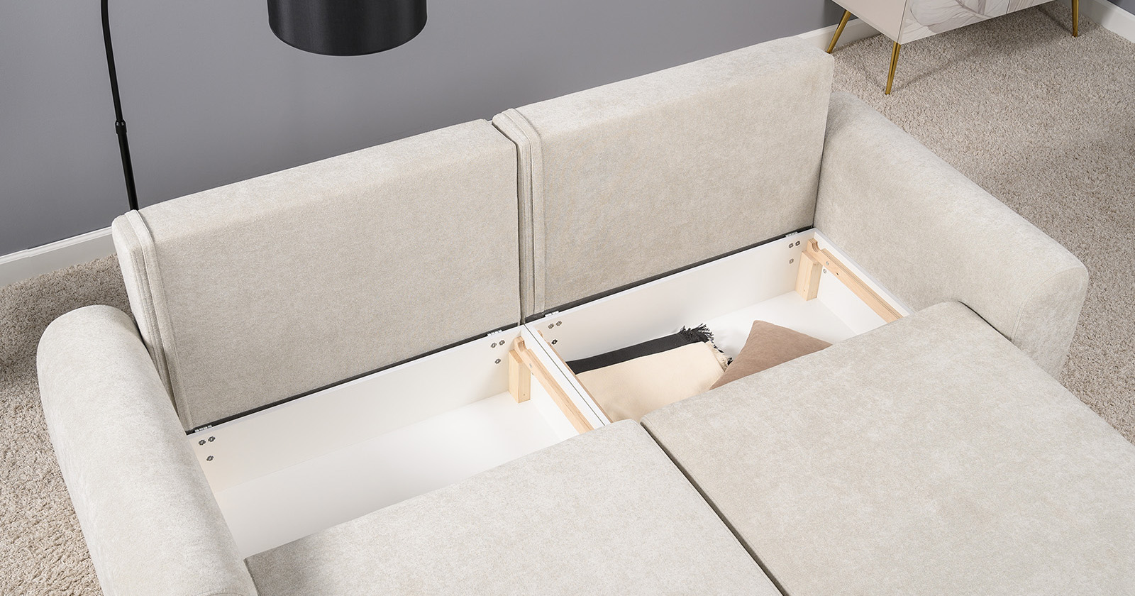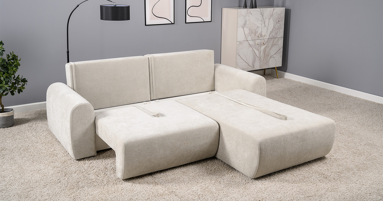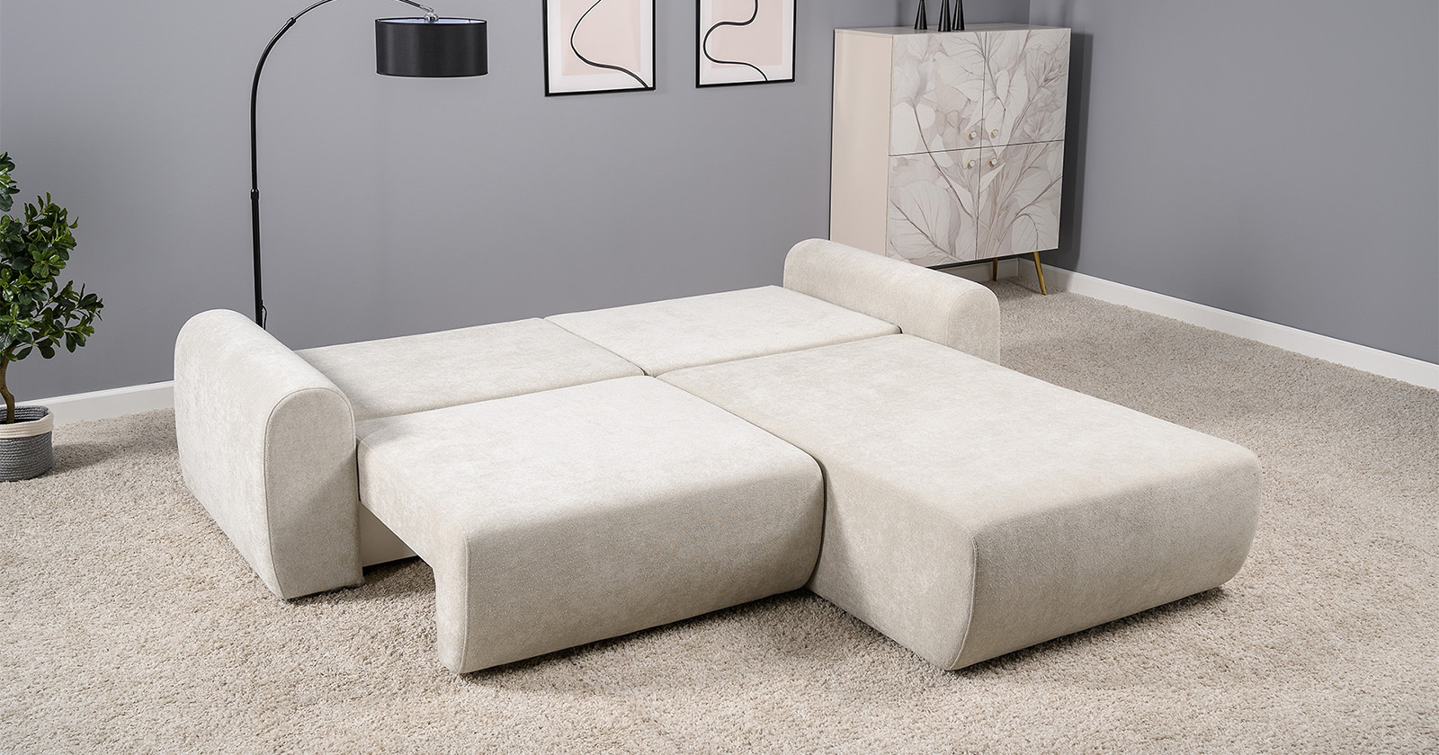 Диван-кровать угловой Тэдди 1502 композиция 3, букле Pique 006 бежевый, модульная система, сборка на любую сторону