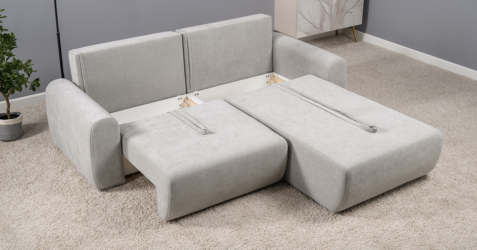 Диван-кровать угловой Тэдди 1506 композиция 2, букле Pique 011 серый, модульная система, сборка на любую сторону