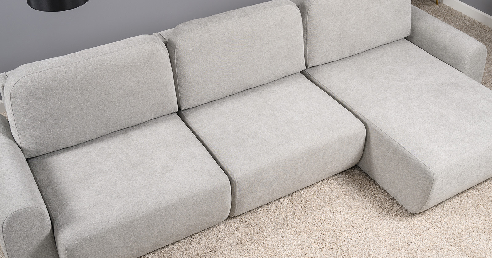 Диван-кровать угловой Тэдди 1502 композиция 2, букле Pique 006 бежевый, модульная система, сборка на любую сторону