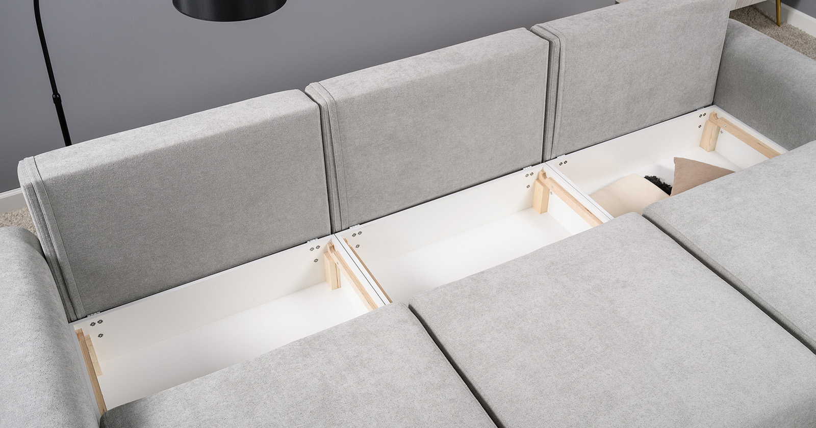 Диван-кровать угловой Тэдди 1506 композиция 2, букле Pique 011 серый, модульная система, сборка на любую сторону