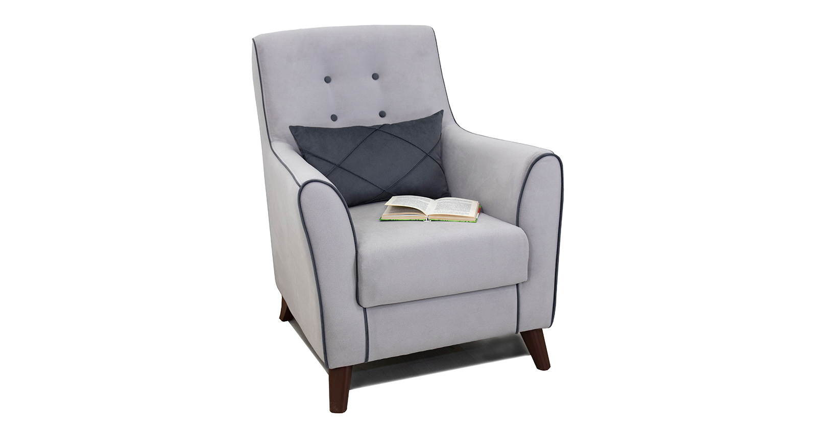 Декоративный кант на кресле, защипы на декоративной подушке, пуговицы на спинке