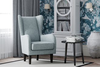 Модель «Шеффилд» - кресло с прямой спинкой для любителей классики. Каминное кресло ― самая классическая трактовка из всех существующих современных вариантов вольтеровского кресла. В нем остались высокие ножки, глубокая посадка, а прямая спинка и «ушки» с высокими подлокотниками прячут от суеты. В такое кресло легко сесть, но трудно подняться, настолько оно уютное. "Шеффилд" отлично подходит для классического интерьере, так и для современного: минимализм, лофт, ар-деко и даже как акцент в скандинавском и хай-тек стилях. Модель выполнена в тканях велюр и рогожка. Цветовые комбинации от молочно-белого до насыщенного изумрудного. Ножки выполнены из дерева.