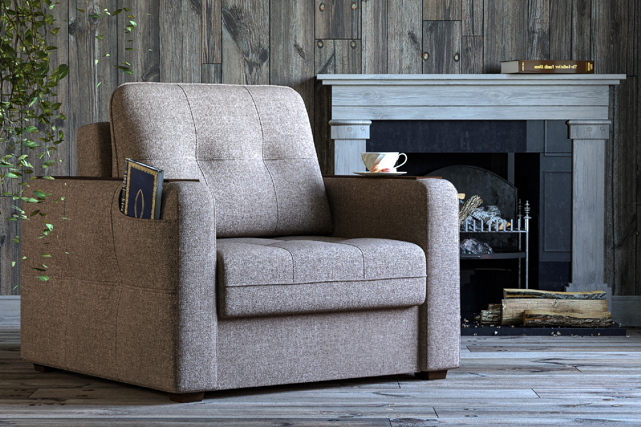 Кресло – кровать коллекции «SMART» - стильное и современное, с лаконичными прямыми формами, легко превращается в полноценное спальное место и так же быстро собирается обратно. Удобный механизм раскладывания "Каскад" не требует отодвигания от стены и работает из стационарного положения. Помимо односпального места и бельевого ящика модель оснащена накладками на подлокотниках, на которые удобно поставить кружку. На подлокотнике есть карман, чтобы гаджеты или книга были всегда под рукой. Модель не перегружена декором, поэтому подойдёт к большинству современных интерьеров. Можно так же заказать кресло без механизма трансформации с бельевым ящиком.