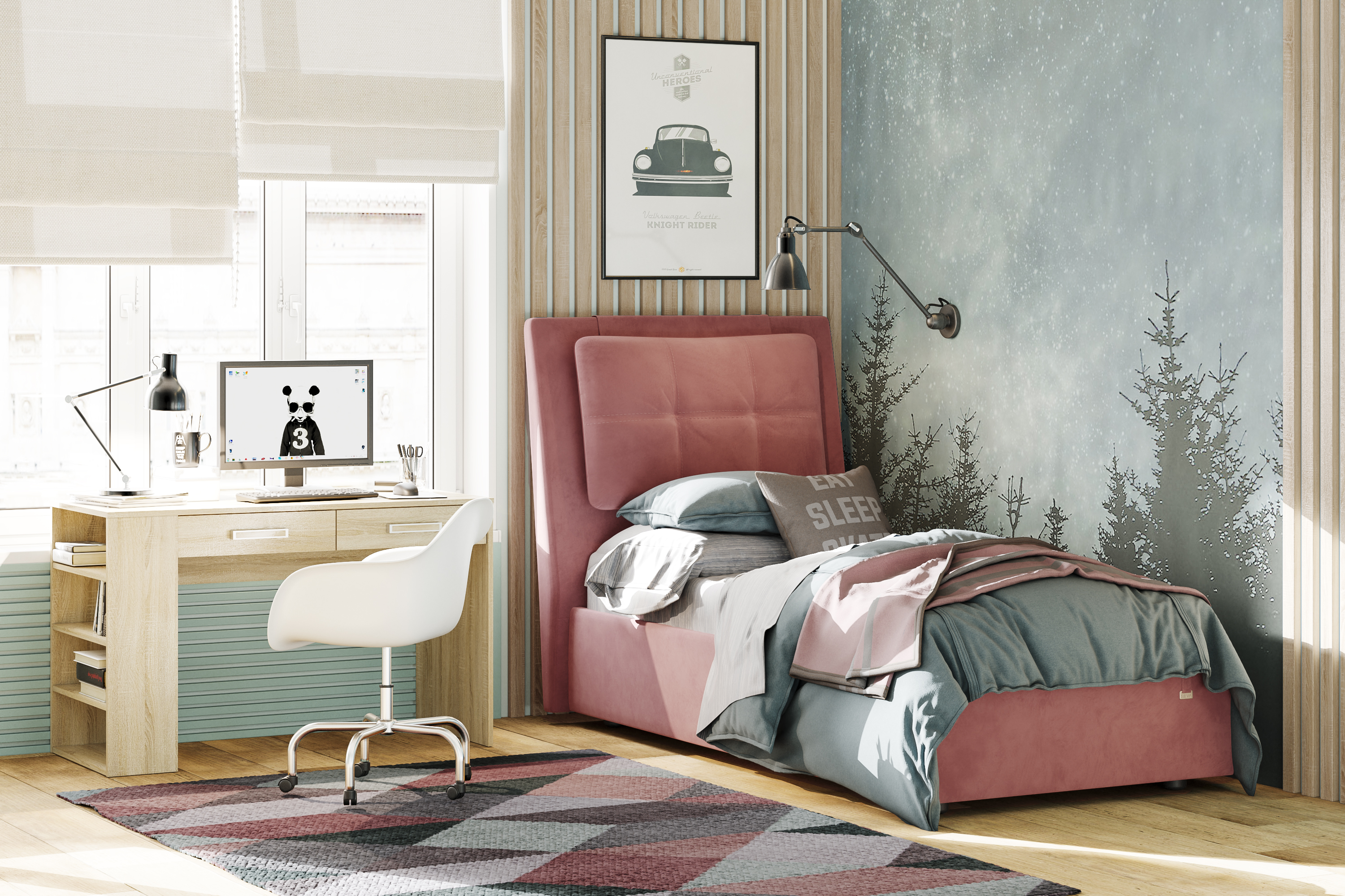 Выбирая кровать для детской, важно учитывать основной момент – она должна быть удобной для сна и отдыха. Кровать «Ester»– отличное решение для детской комнаты. Мягкое изголовье позволяет с комфортом читать книги перед сном, смотреть телевизор. Высокое изголовье с обивкой позволяют повысить шумоизоляцию. Мягкая обивка кровати и отсутствие острых углов помогут избежать травмирования.
