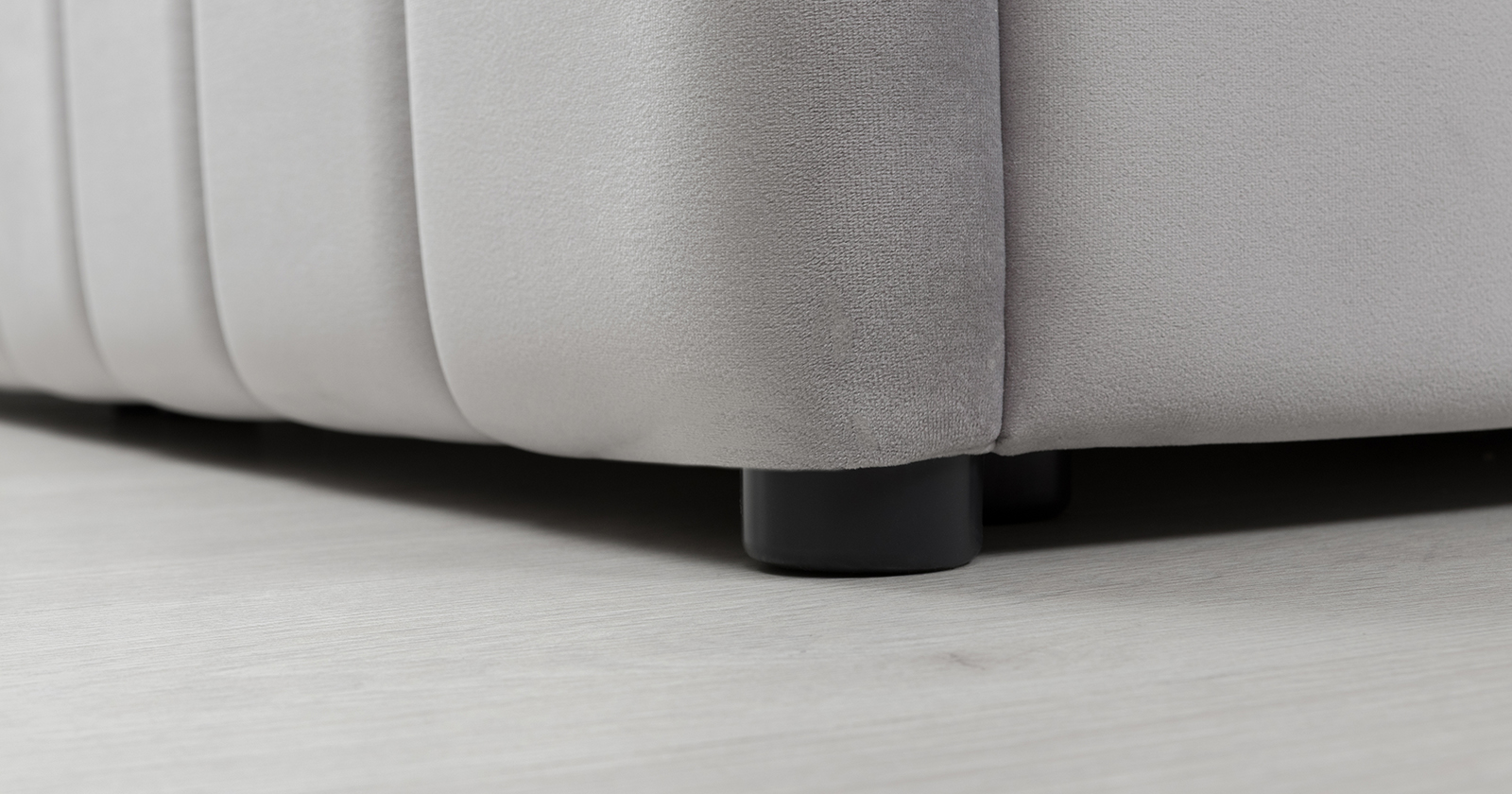 Основание кровати укомплектовано матрасодержателями. Жесткое кроватное дно из ЛДСП 16 мм. Задняя стенка изголовья выполнена в тех. ткани (спанбонд).