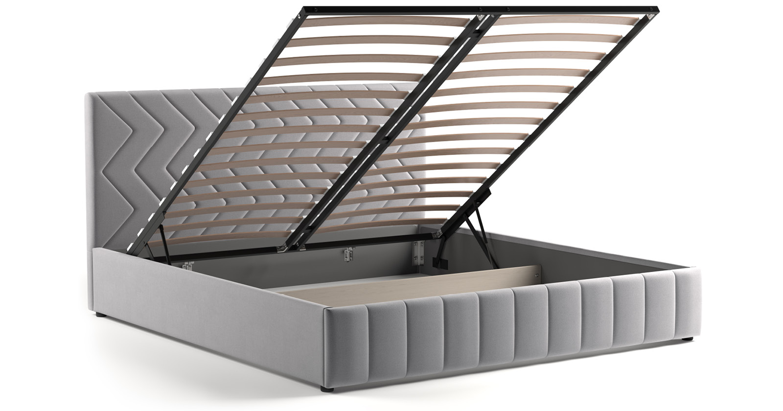 Кровать Милана 160 велюр светло-серый с ортопедическим основанием и подъемным механизмом