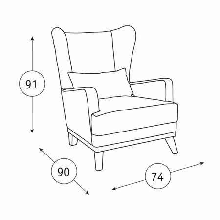 Высокая спинка с наклоном и мягкие подлокотники обеспечивают удобную посадку, дополнительный комфорт создает декоративная подушка. Царга кресла обтянута искусственной кожей в цвет опорам.