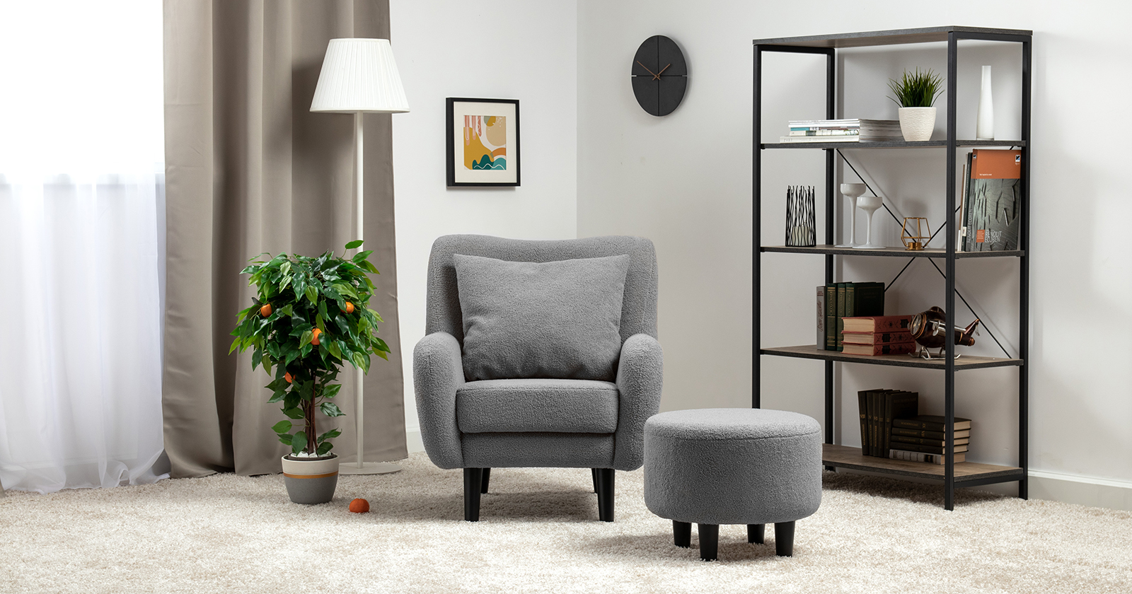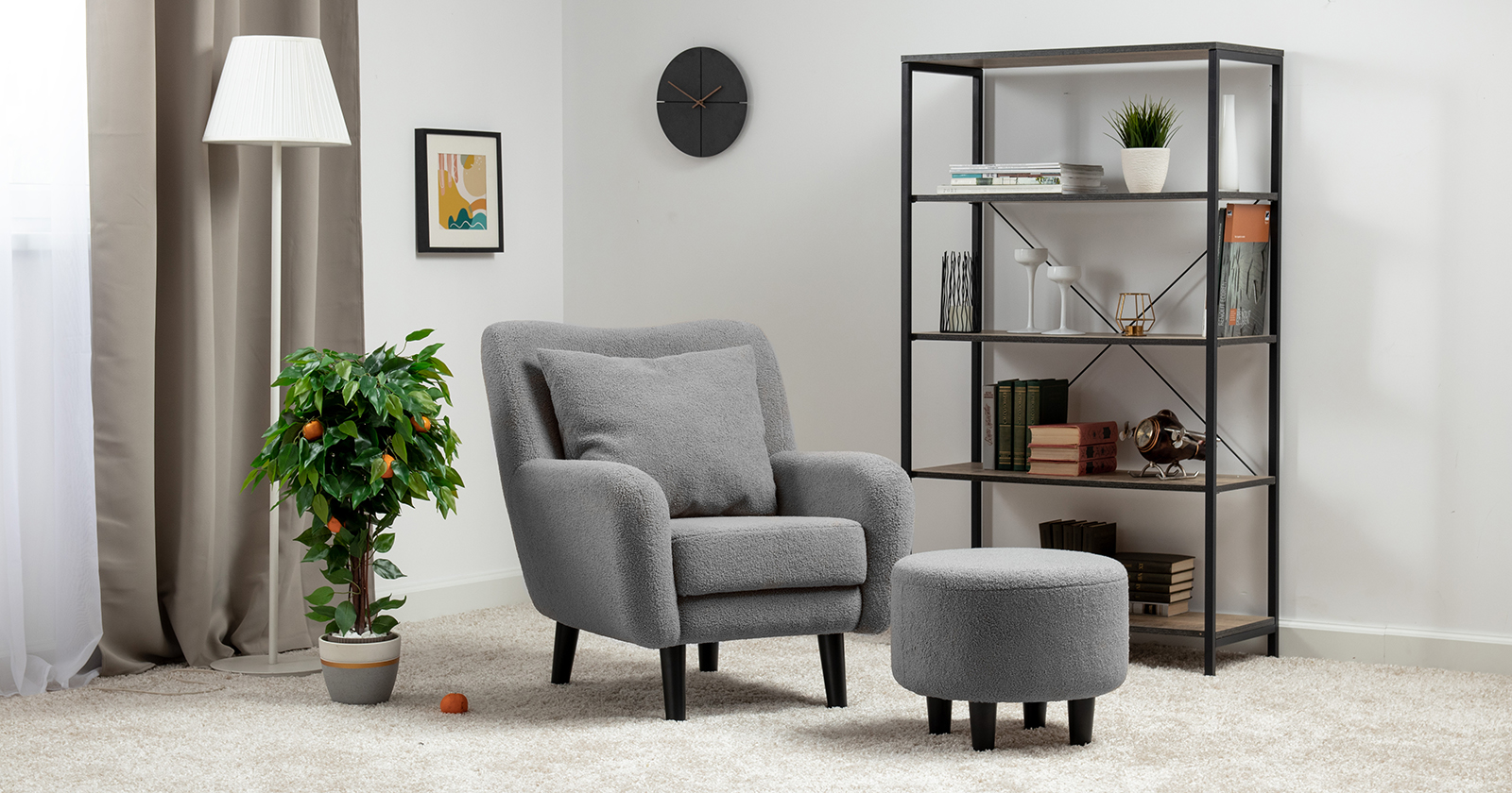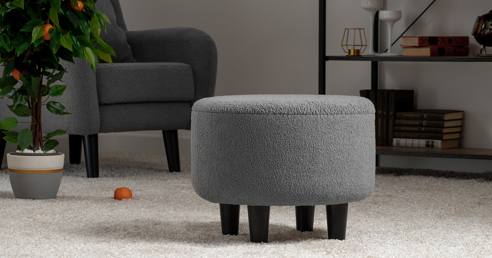 Ткань букле делает кресло особенно уютным и мягким