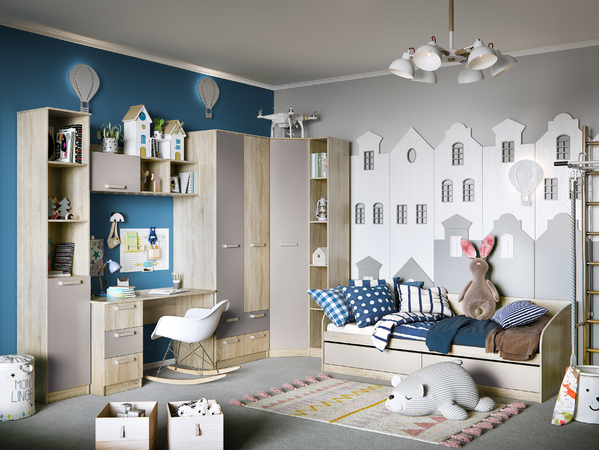 Кровать детская растущая Zoom НМ 041.08 дуб сонома (Акварель, Оливия, Фанк)
