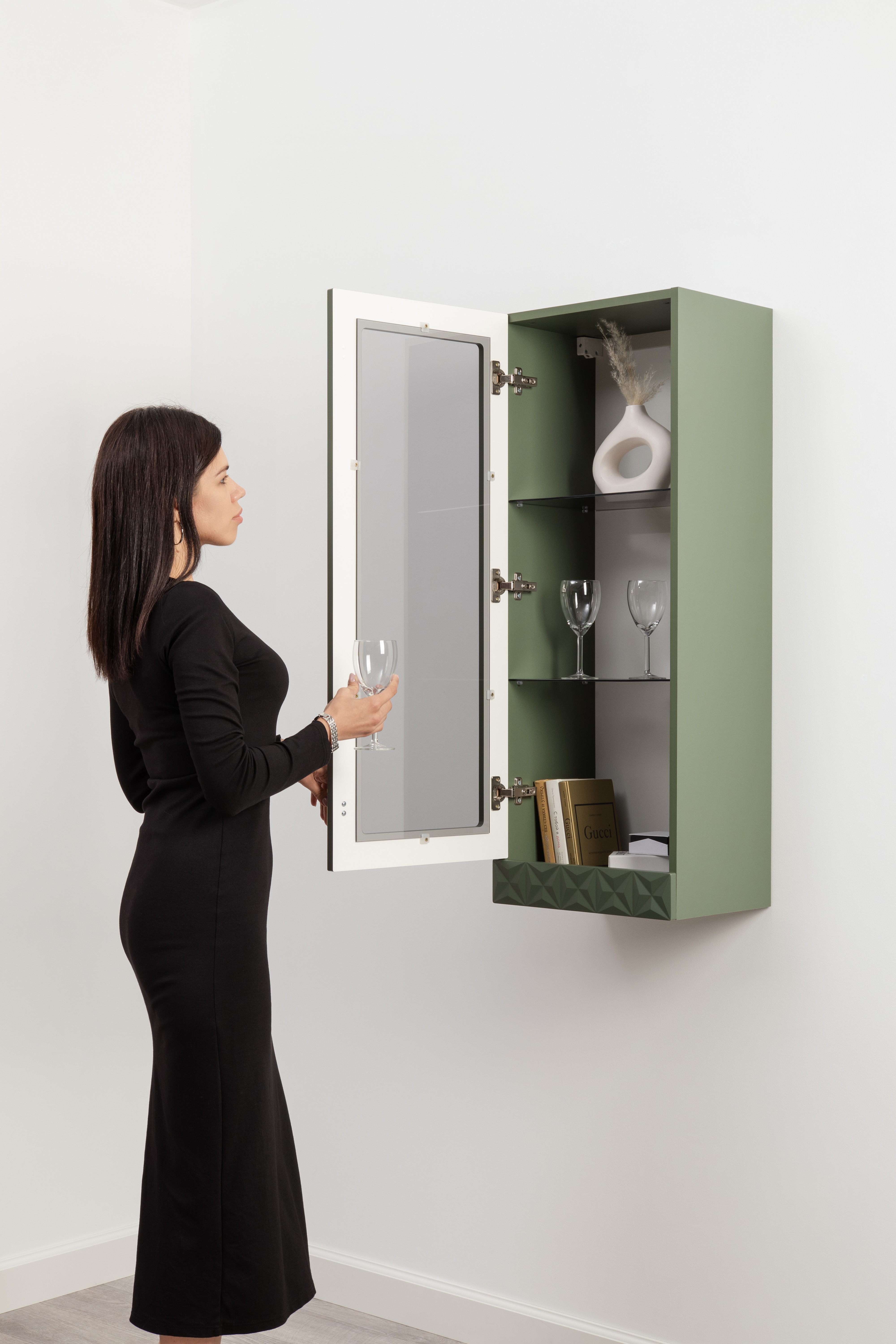 Шкаф навесной Марион 16.334 дымчатый зеленый K521, олива шагрень AG 1050 ПВХ (собирается на любую сторону)