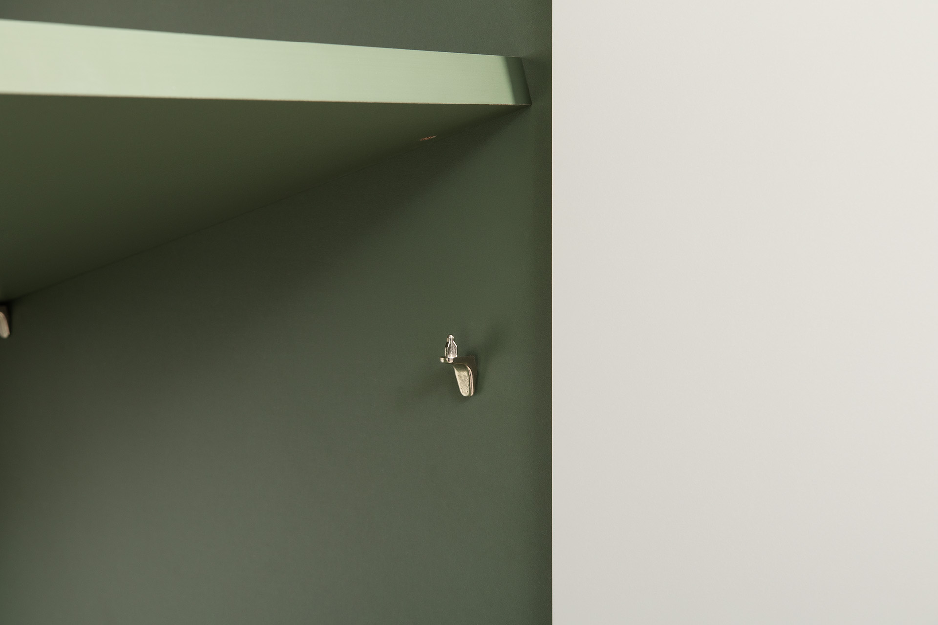 Изящные линии, глубокая фрезеровка фасадов из МДФ и благородные оттенки. Утончённая «Слоновая кость» и изысканная «Олива Шагрень» с глубоким зелёным тоном — создают атмосферу уюта, тепла и благородства. Металлические ручки и опоры золотого цвета придают мебели утончённый блеск, а петли и направляющие с доводчиками обеспечивают плавное и бесшумное закрытие фасадов.