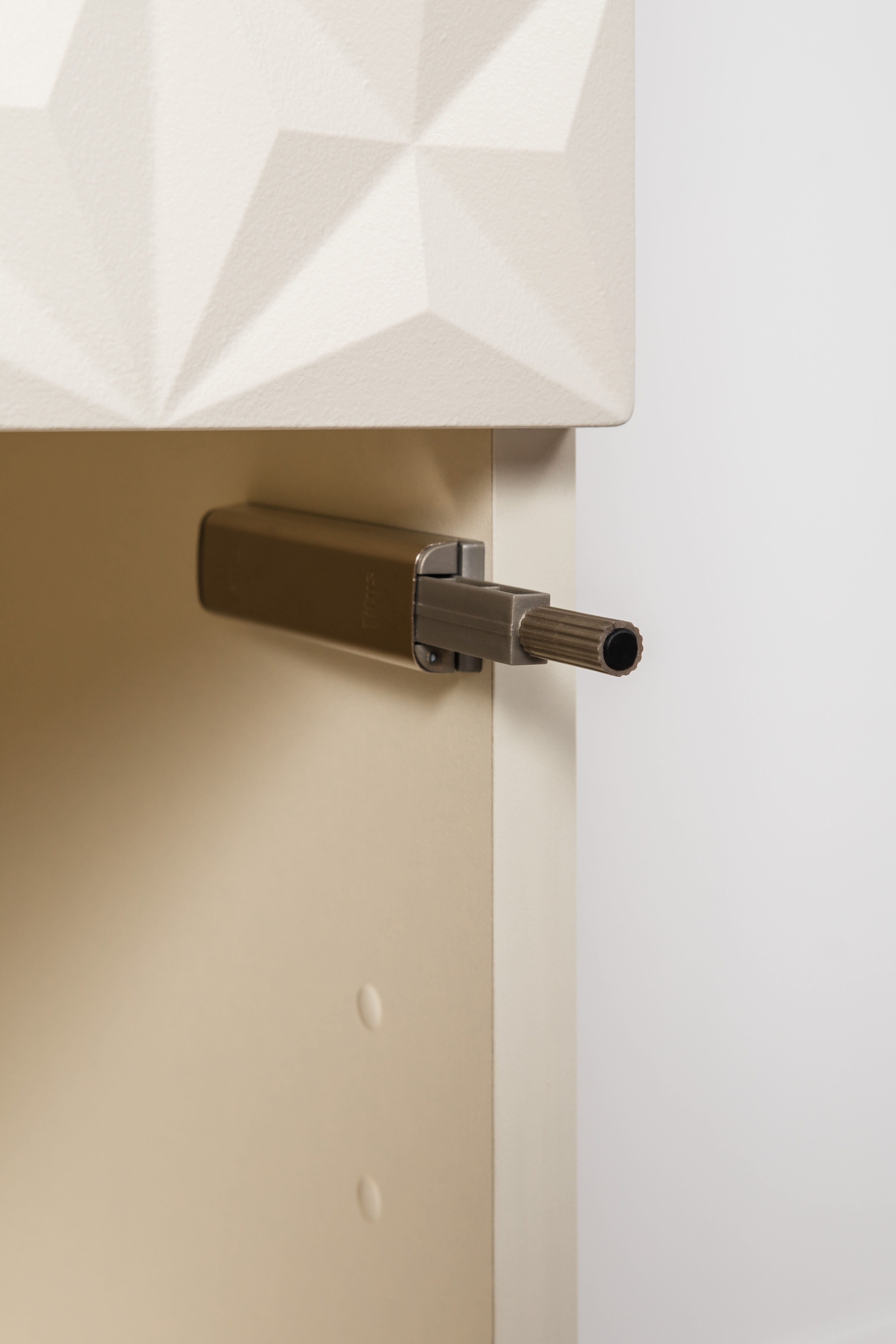 Изящные линии, глубокая фрезеровка фасадов из МДФ и благородные оттенки. Утончённая «Слоновая кость» и изысканная «Олива Шагрень» с глубоким зелёным тоном — создают атмосферу уюта, тепла и благородства. Металлические ручки и опоры золотого цвета придают мебели утончённый блеск, а петли и направляющие с доводчиками обеспечивают плавное и бесшумное закрытие фасадов.