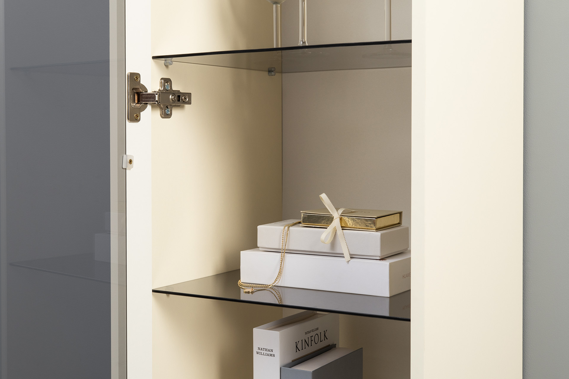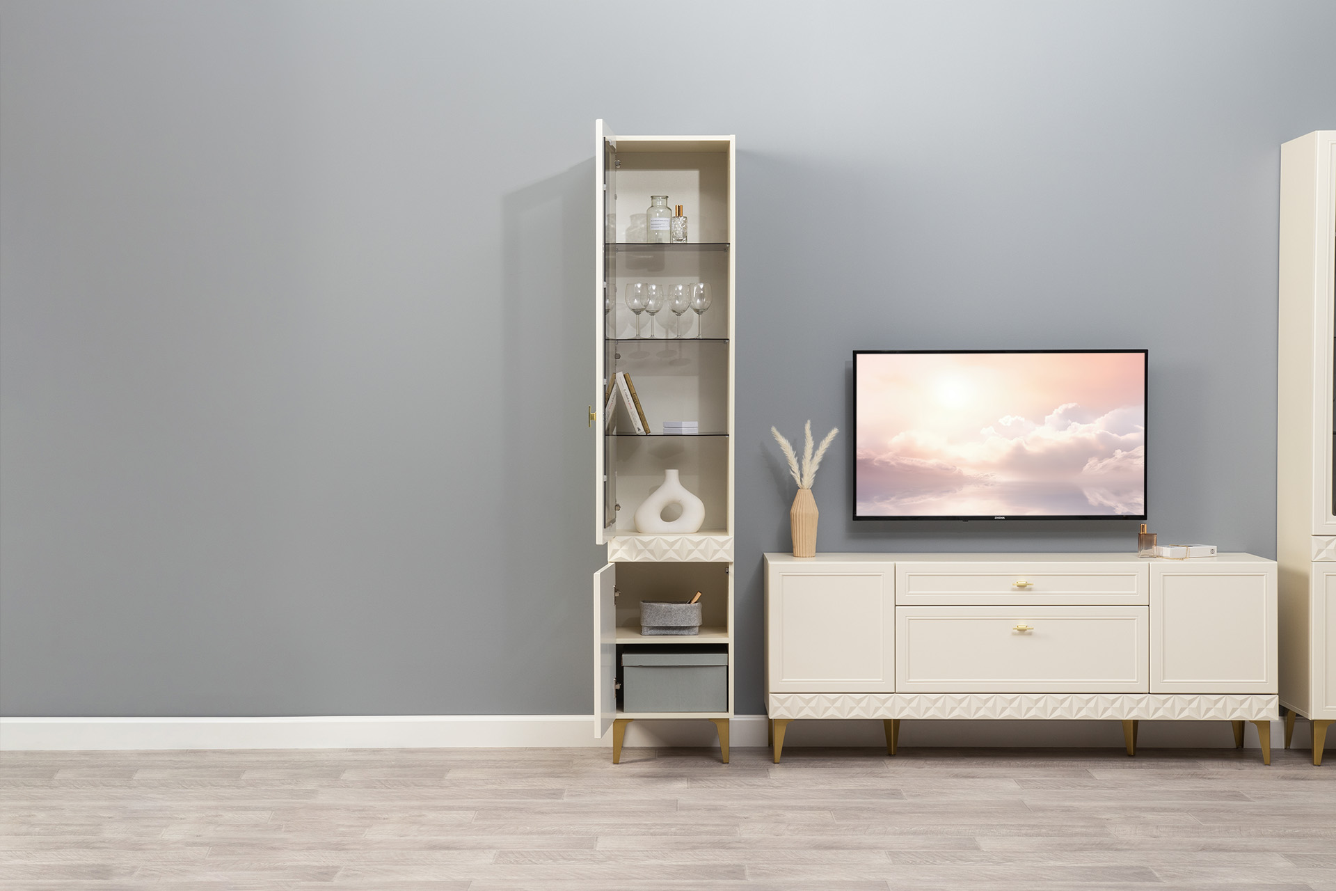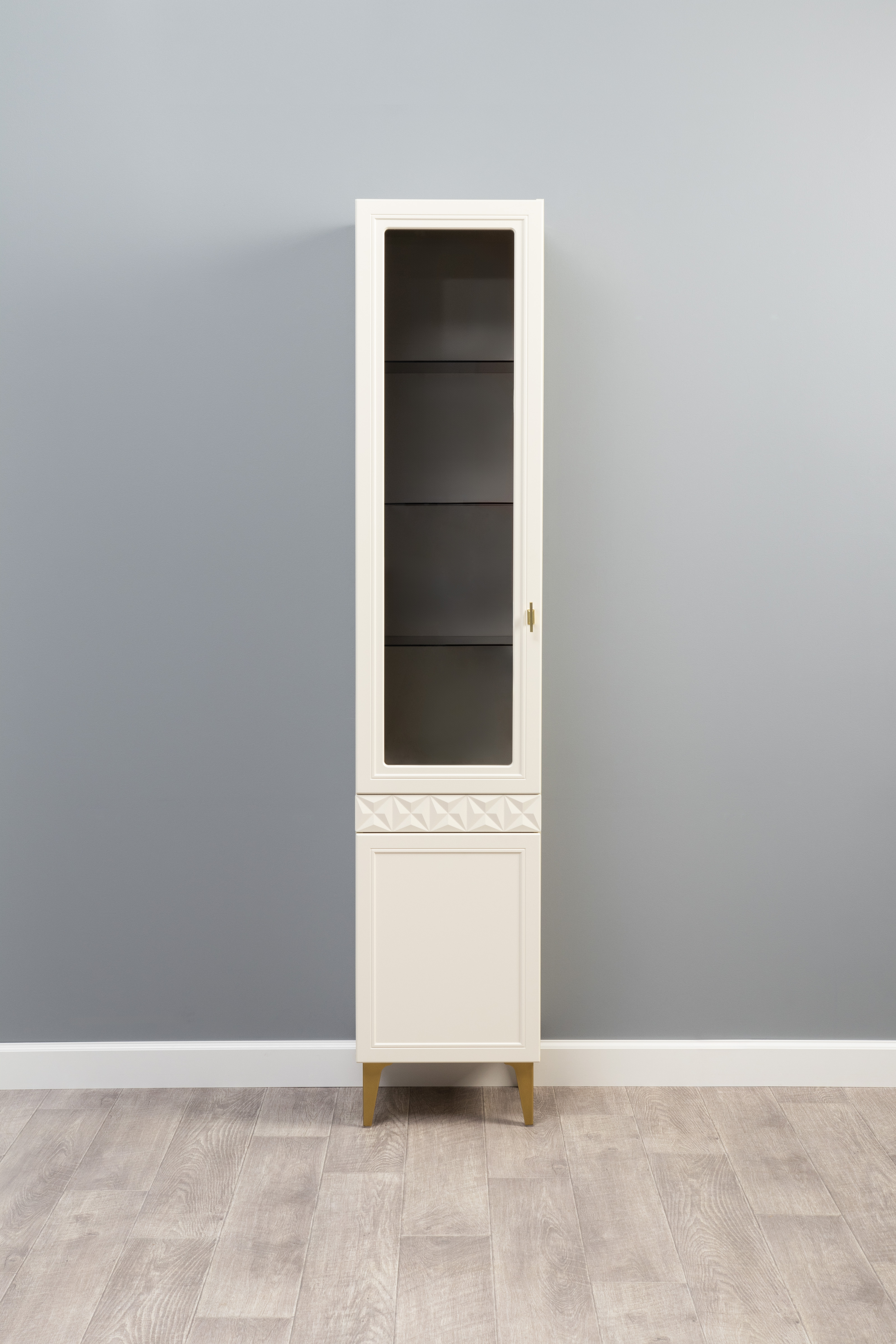 Шкаф-витрина Марион 16.397.01 слоновая кость С341 PE, слоновая кость 6898 ПВХ (собирается на любую сторону)