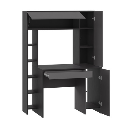 Распашные двери на четырёхшарнирных петлях. Выдвижной ящик на шариковых направляющих полного выдвижения. Верхний левый фасад на газлифте, открывается за нижнюю часть фасада. Верхний правый фасад открывается при помощи механизма Push. Нижний правый фасад открывается при помощи механизма Push (предусмотрена возможность установки системного блока)Кабель канал в задней части столешницы для проводов. (Механизм Push - открывание нажатием на фасад)