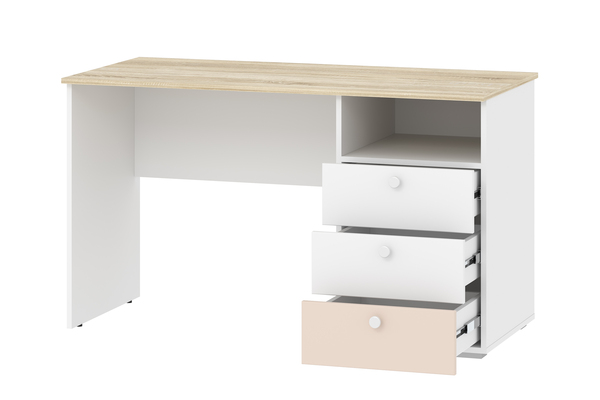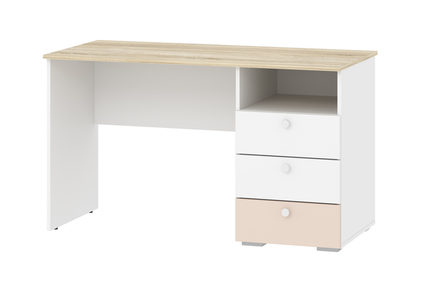 Одним из важнейших принципов развития ребенка является обустройство его рабочего места, где школьник сможет выполнять уроки, заниматься творчеством и любимым хобби. Письменный стол НМ 041.40 «Банни» с тумбой позволит оформить в спальне рабочий уголок в скандинавском стиле. Данная модель дополнена небольшим модулем из трех выдвижных ящиков и открытой ниши. Вместительная полка под рабочей поверхностью прекрасно подходит для книг и тетрадей. Тумбу с ящиками возможно разместить как в левой, так и в правой части изделия в зависимости от предпочтений ребенка. Ящика с удобными ручками легко выдвигаются, предоставляя полный доступ к содержимому и позволяя быстро найти необходимый предмет.