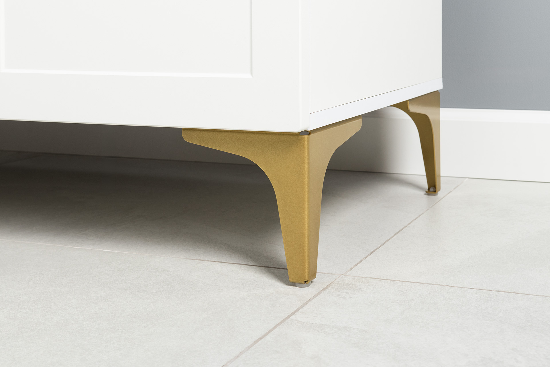 Фасады МДФ с фрезеровкой и верхняя крышка из МДФ сочетаются с металлическими ручками и опорами, создавая притягательный акцент в интерьере.