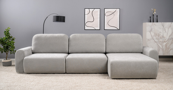 Диван-кровать угловой Тэдди 1506 композиция 3, букле Pique 011 серый, модульная система, сборка на любую сторону